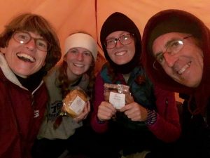“The last week [of the reading] was the week leading up to Christmas, so my whole family was reading Matthew together every night, and it was just really cool because we would be in wet sleeping bags and wet tents in the freezing cold…It was so much fun.”
